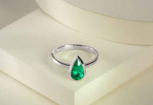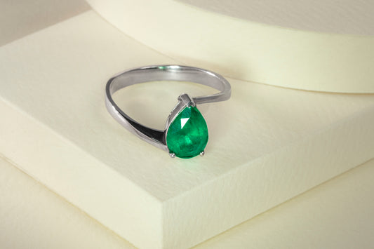 Anillo solitario oro blanco con esmeralda natural - ANB030
