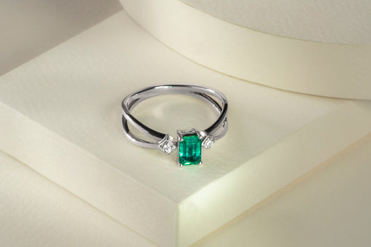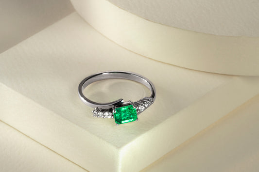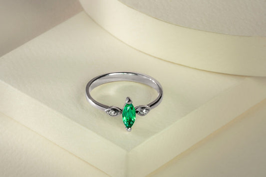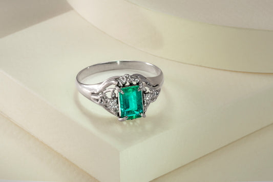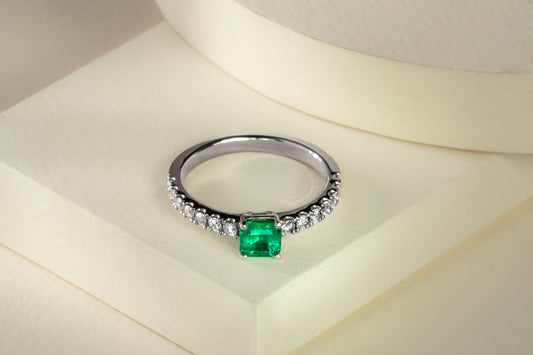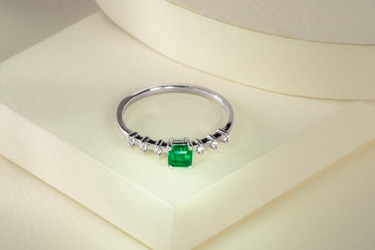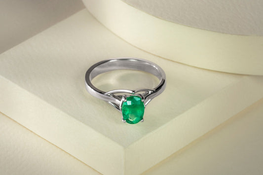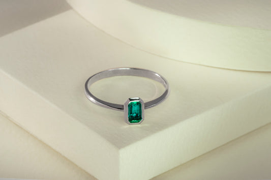 Anillo solitario oro blanco con esmeralda natural - ANB051