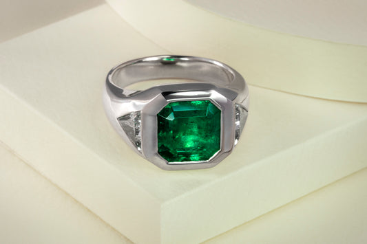 Anillo de hombre oro blanco con esmeralda natural - ANB069