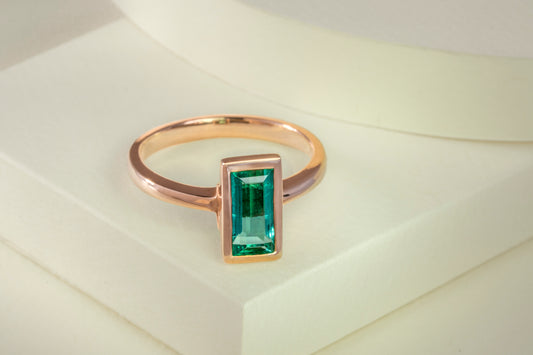 Anillo solitario oro rosado con esmeralda natural - ANR001