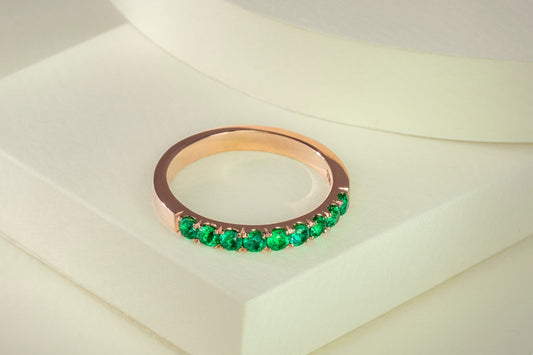 Anillo cintillo oro rosado con esmeraldas naturales - ANR002
