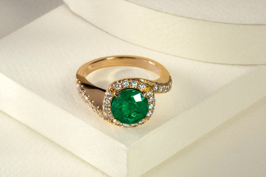 Anillo cluster oro amarillo con esmeralda y diamantes naturales - ANA092