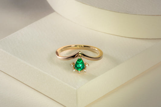 Anillo oro amarillo con esmeralda y diamantes naturales - ANA103