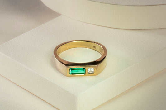 Anillo oro amarillo con esmeralda y diamante naturales - ANA001