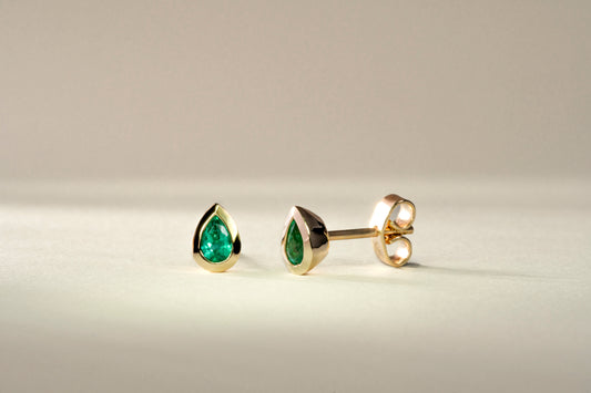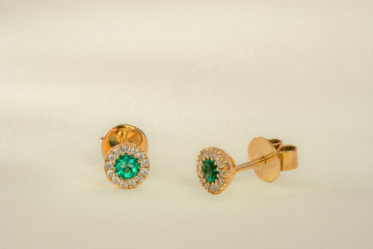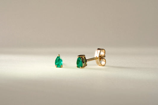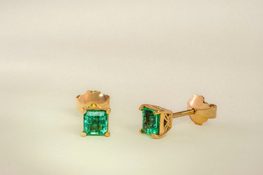 Aretes topos oro amarillo con esmeralda natural - ARA075