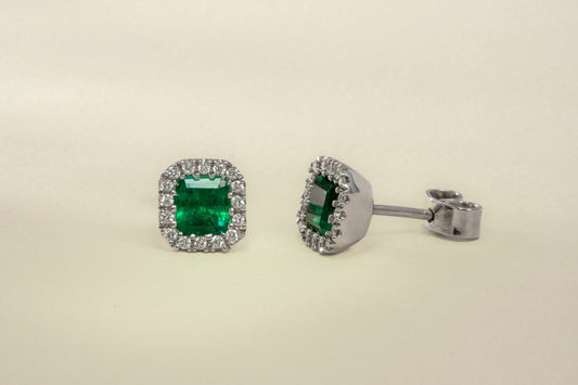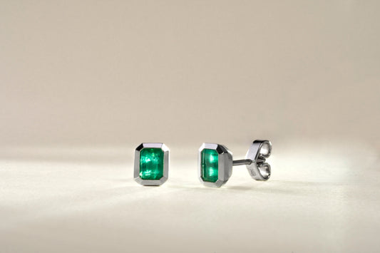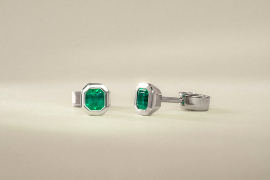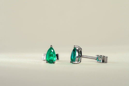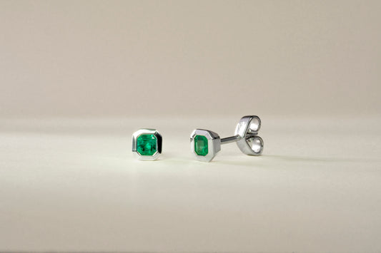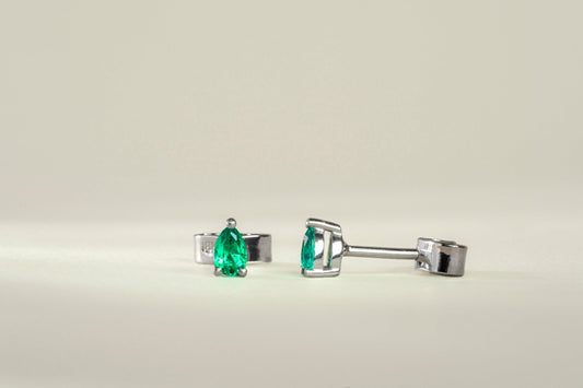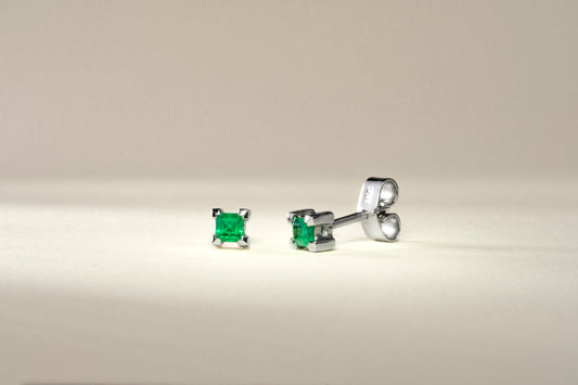 Aretes topos oro blanco con esmeralda natural - ARB038