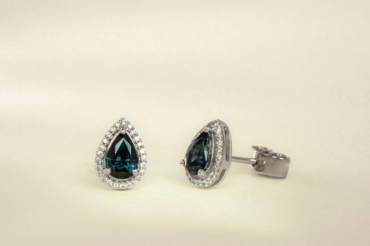 Aretes cluster oro blanco con zafiros y diamantes naturales - ARO009