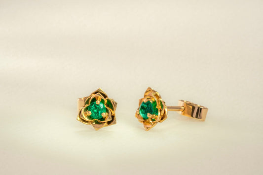 Aretes topos oro amarillo con esmeralda natural - ARA074