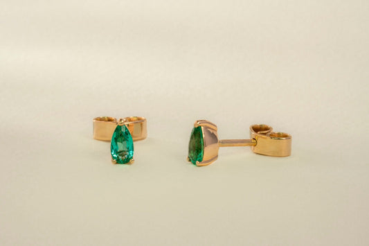 Aretes topos oro amarillo con esmeralda natural - ARA059