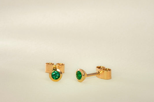 Aretes topos oro amarillo con esmeralda natural - ARA066