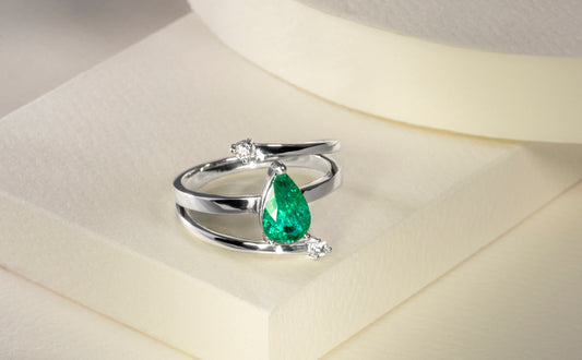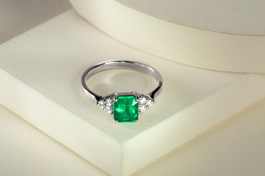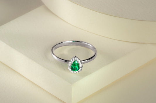 Anillo oro blanco con esmeralda y diamantes naturales - ANB056