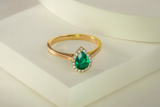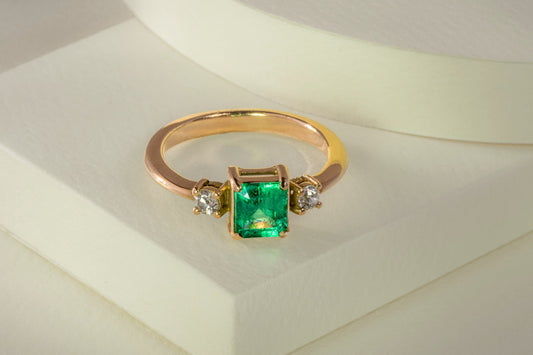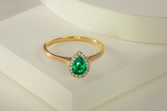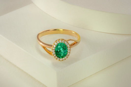 Anillo oro amarillo con esmeralda y diamantes naturales - ANA152
