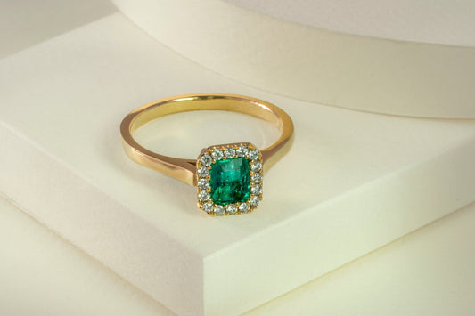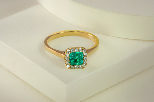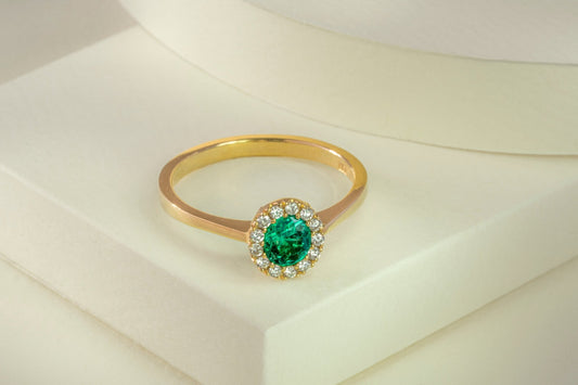 Anillo cluster oro amarillo con esmeralda y diamantes naturales - ANA148