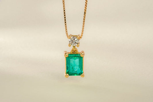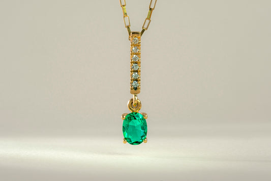 Dije con cadena con esmeralda y diamante natural - DOA052