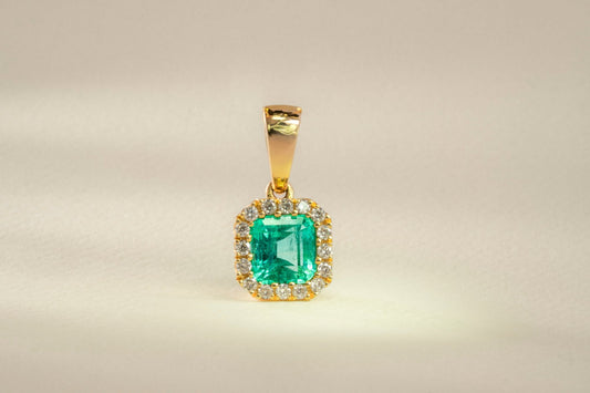 Dije cluster oro amarillo con esmeralda y diamantes naturales - DOA020