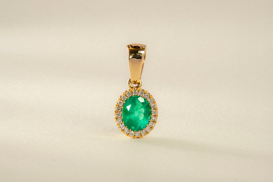 Dije oro amarillo con esmeralda y diamantes naturales - DOA009