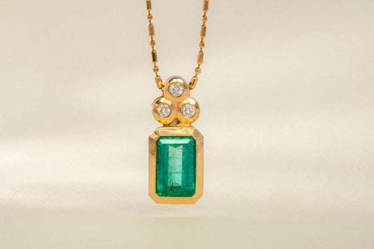 Dije con cadena con esmeralda y diamantes naturales - DOA053