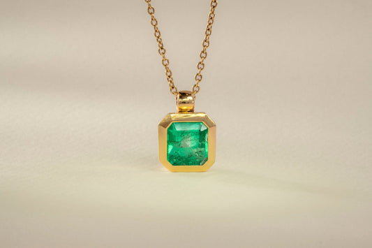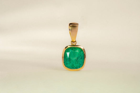 Dije con cadena oro amarillo con esmeralda natural - DOA007