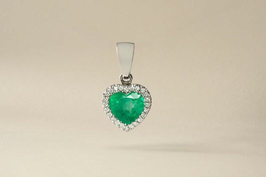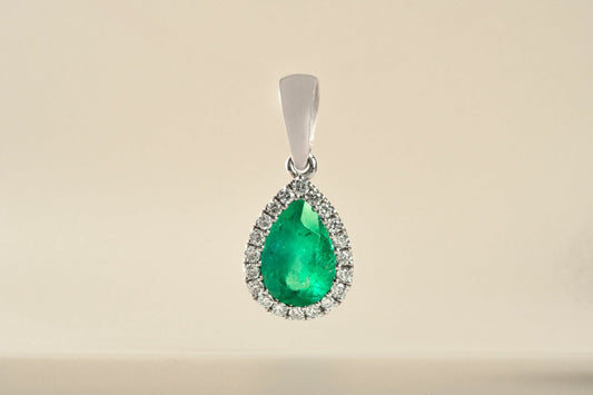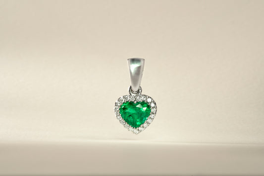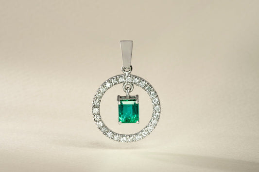 Dije oro blanco con esmeralda y diamantes naturales - DOB032