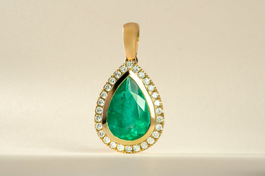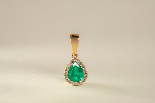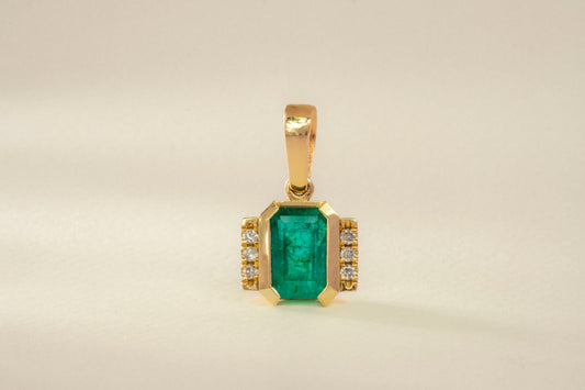 Dije oro amarillo con esmeralda y diamante naturales - DOA004