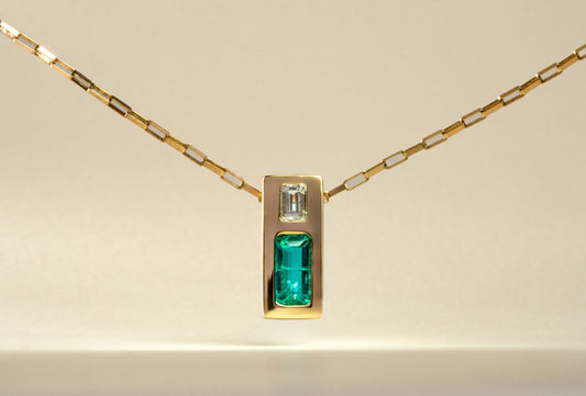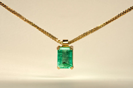 Dije con cadena oro amarillo con esmeralda natural - DOA048