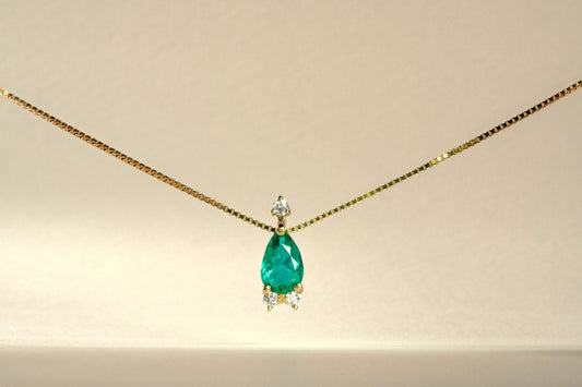 Dije con cadena oro amarillo con esmeralda natural - DOA090