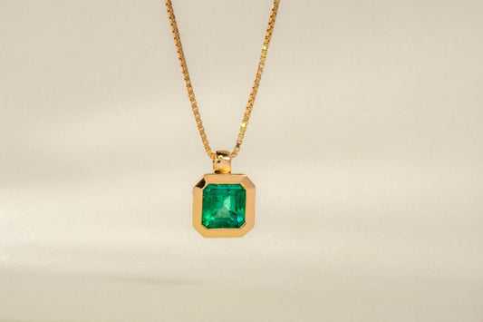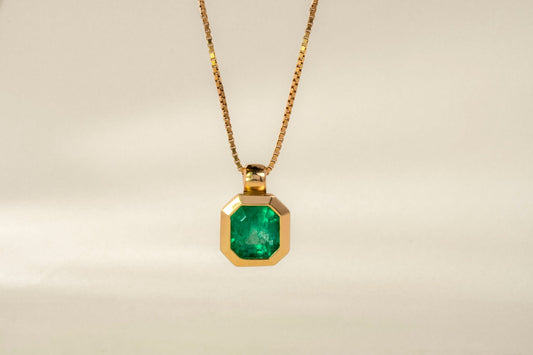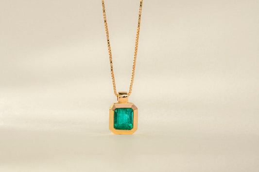 Dije con cadena oro amarillo con esmeralda natural - DOA007