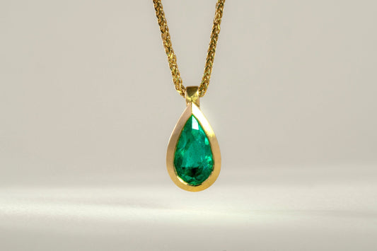 Dije con cadena oro amarillo con esmeralda natural - DOA059