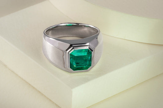 Anillo de hombre oro blanco con esmeralda natural - ANB069